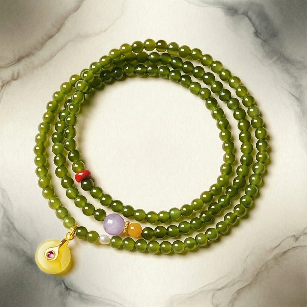 In the turbulent currents of modern life, true protection comes not from brute force, but from inner stability. Crafted from genuine Hetian Jade (Nephrite), revered in the East for millennia as the “Stone of Heaven,” this multi-layered mala bracelet is more than jewelry—it is a spiritual shield.